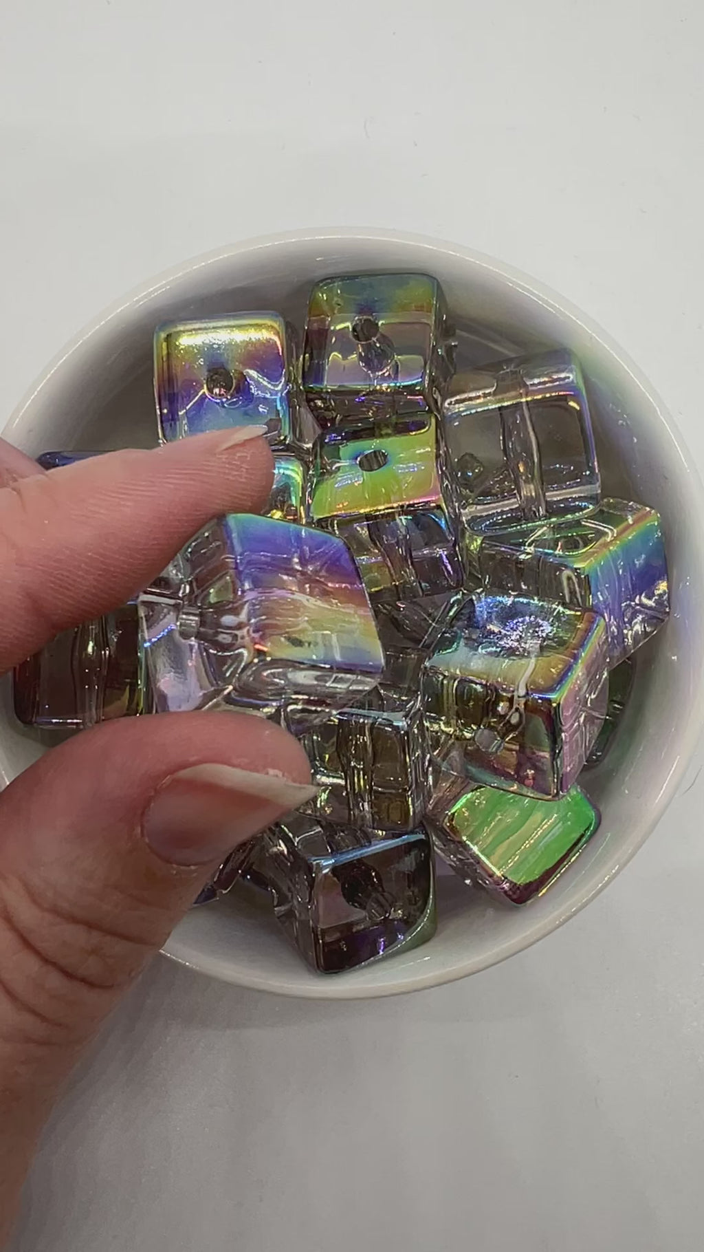 Grey Translucent Iridescent Square Beads 16mm Square, 20mm Diagonal (Package of 10)