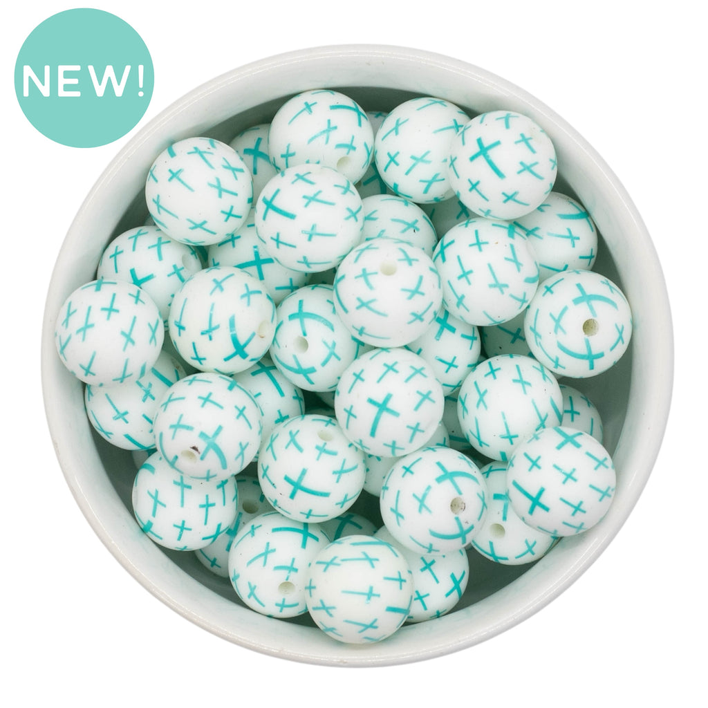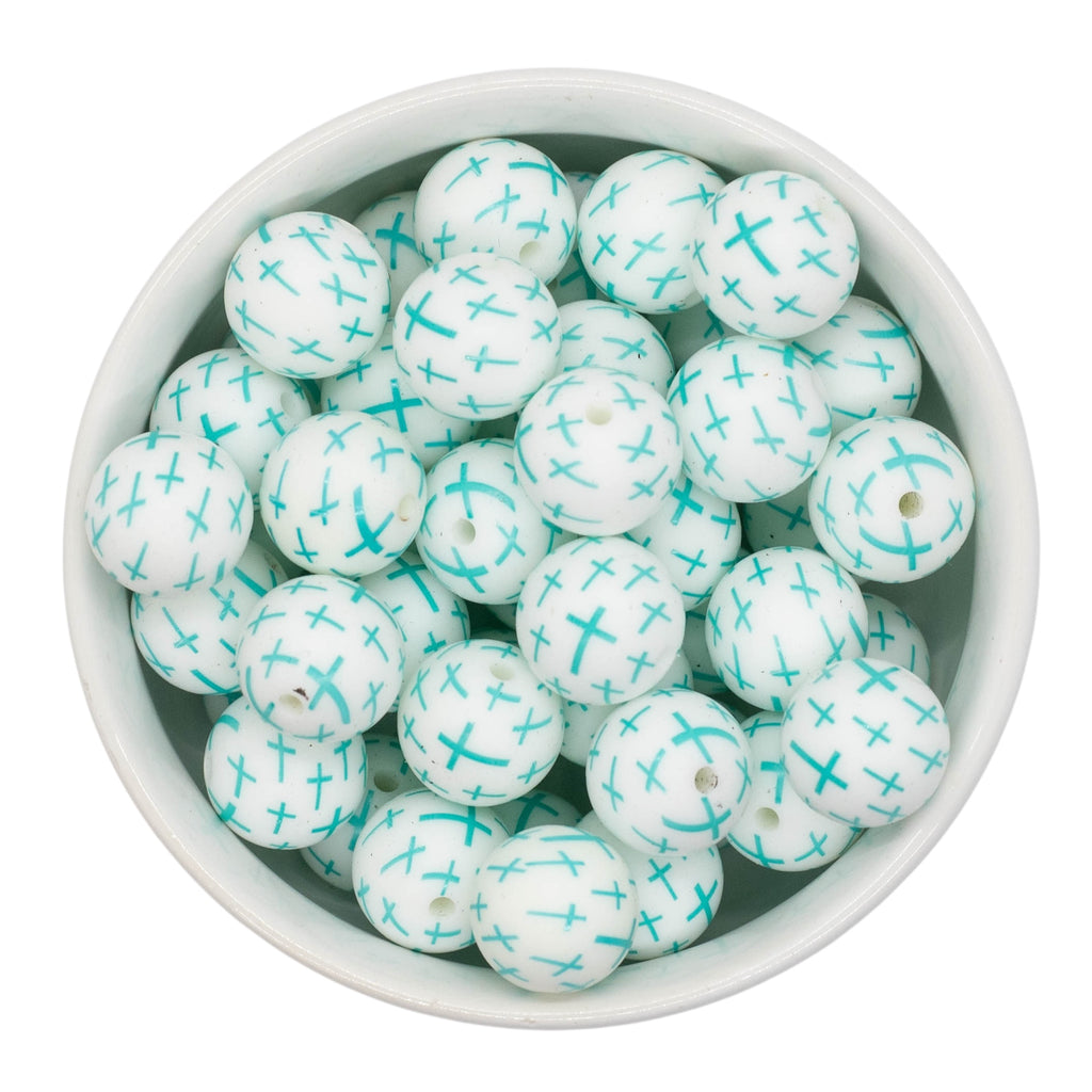 Fresh Mint Cross Printed Silicone Beads 15mm (Package of 10)