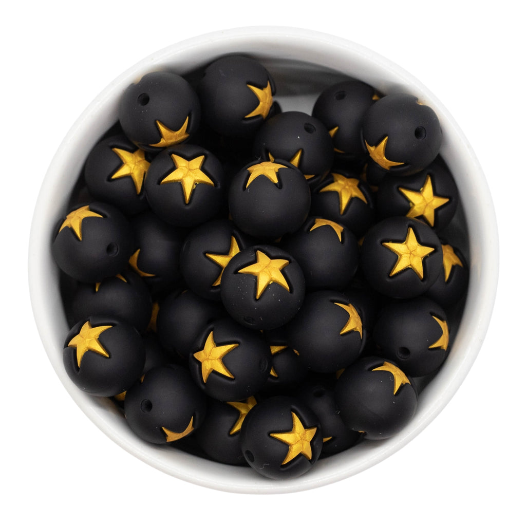Black w/Gold Star Inlay Silicone Beads 15mm (Package of 10)