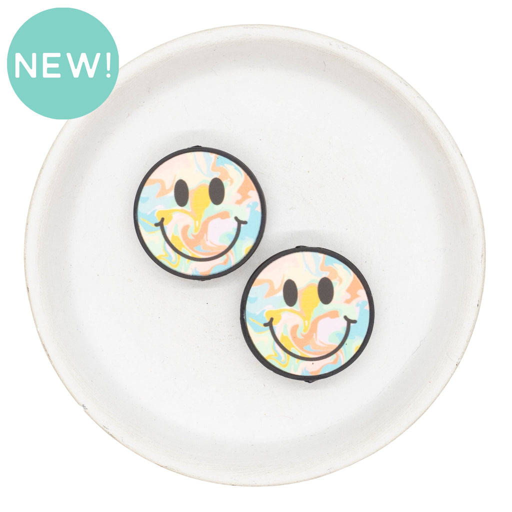 Tie Dye Smiley Face Silicone Focal Bead 31mm (Package of 2)