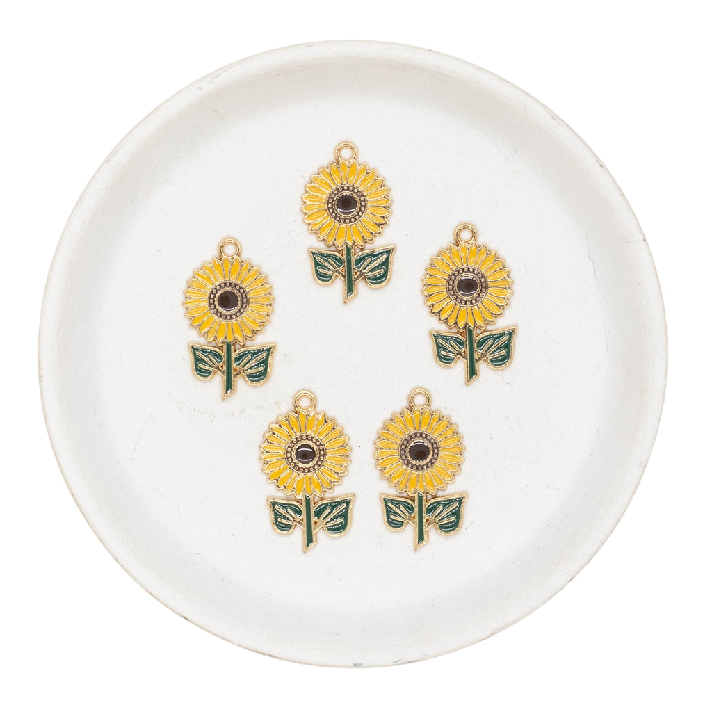 Enamel Sunflower Charm 28x16mm (Package of 5)