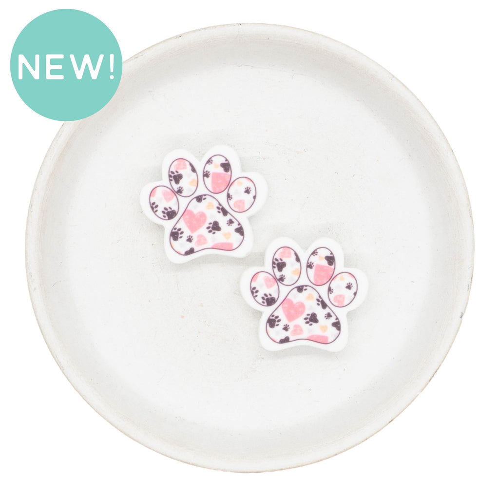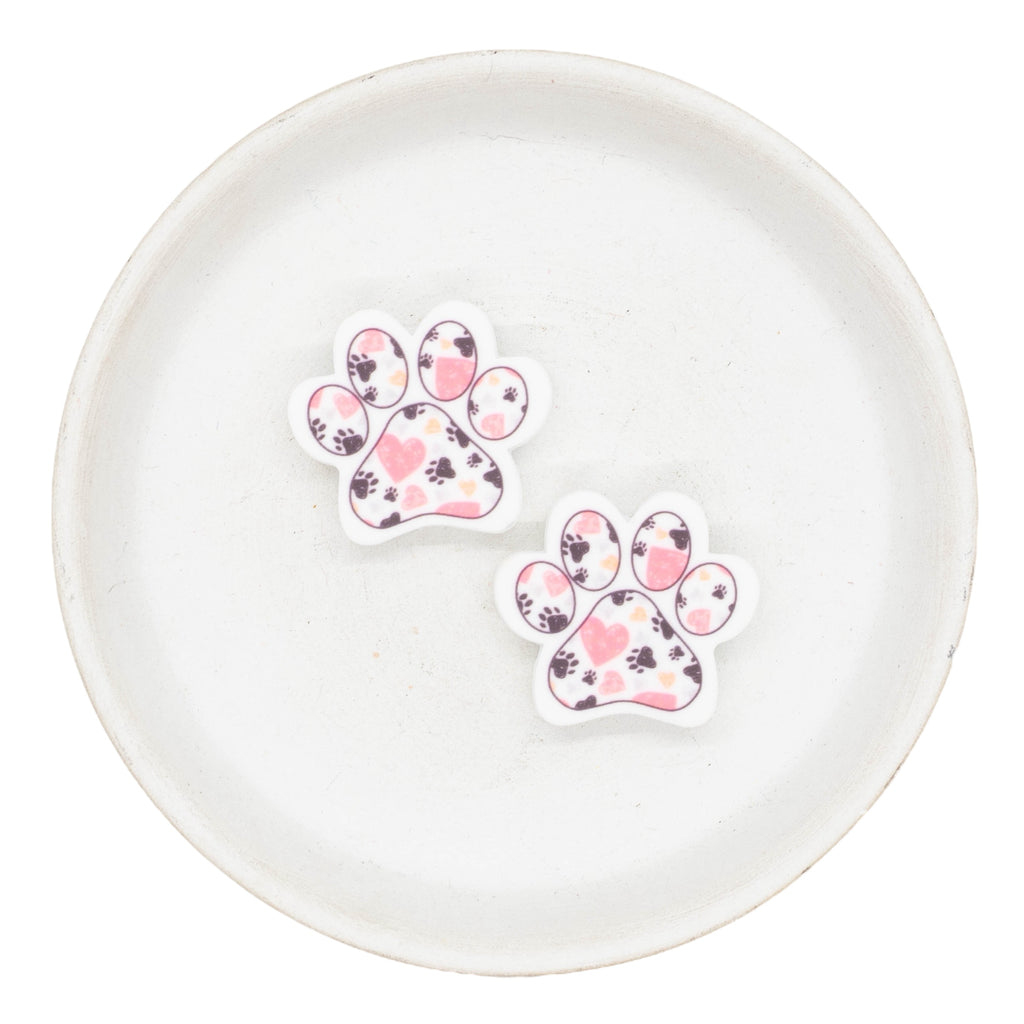 Printed Paw Silicone Focal Bead 26x30mm (Package of 2)