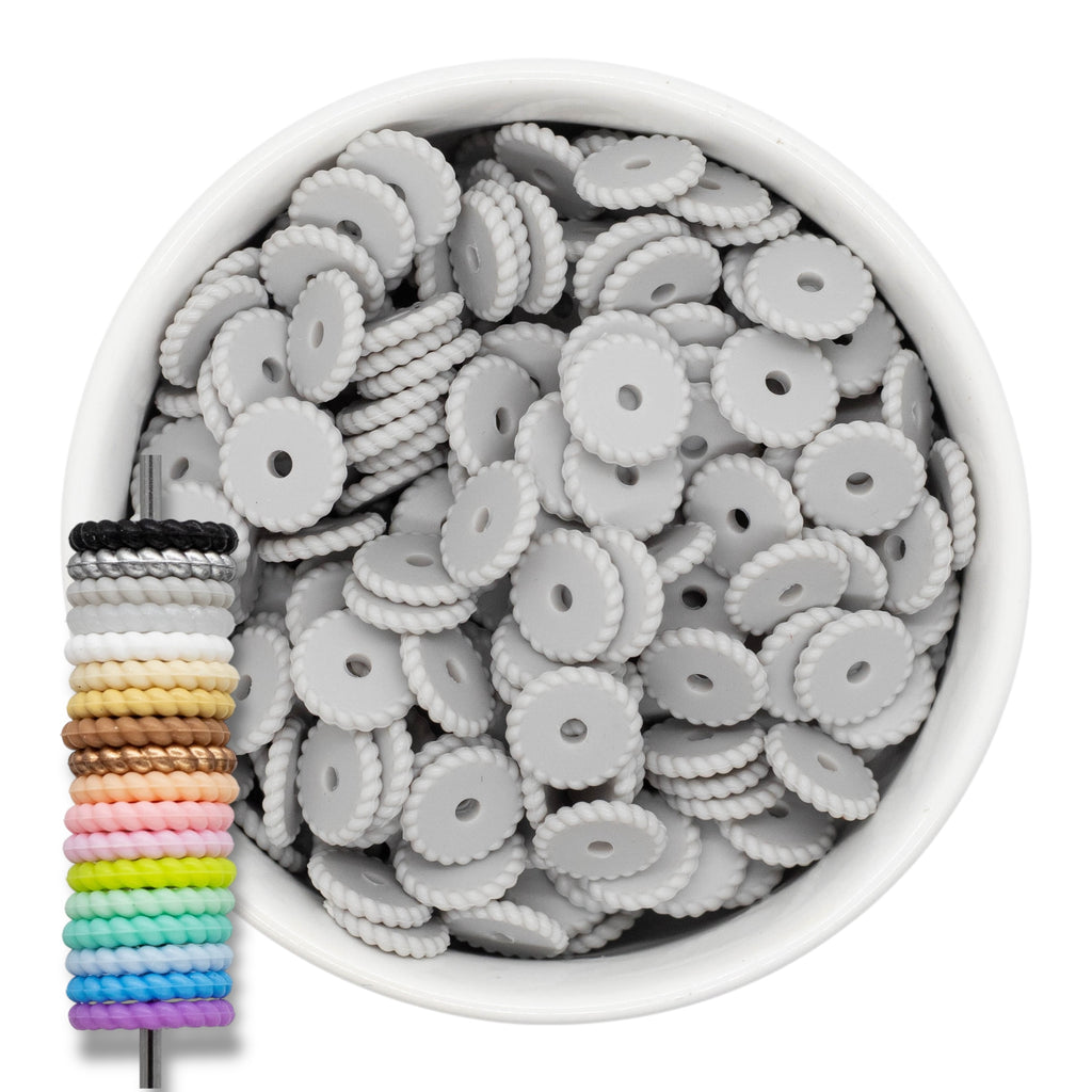 Coin Grey Rope Edge Silicone Spacer Beads 12x2mm (Package of 20)