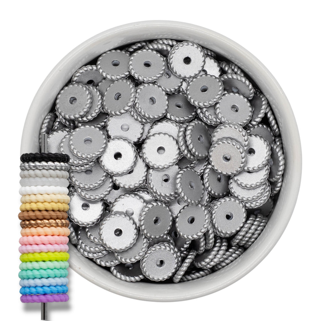 Metallic Silver Rope Edge Silicone Spacer Beads 12x2mm (Package of 20)