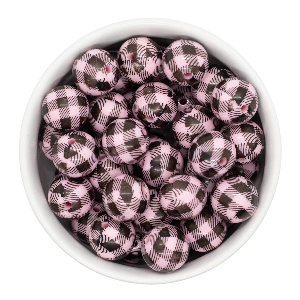 Black & Light Pink Plaid Beads 16mm (Package of 10)