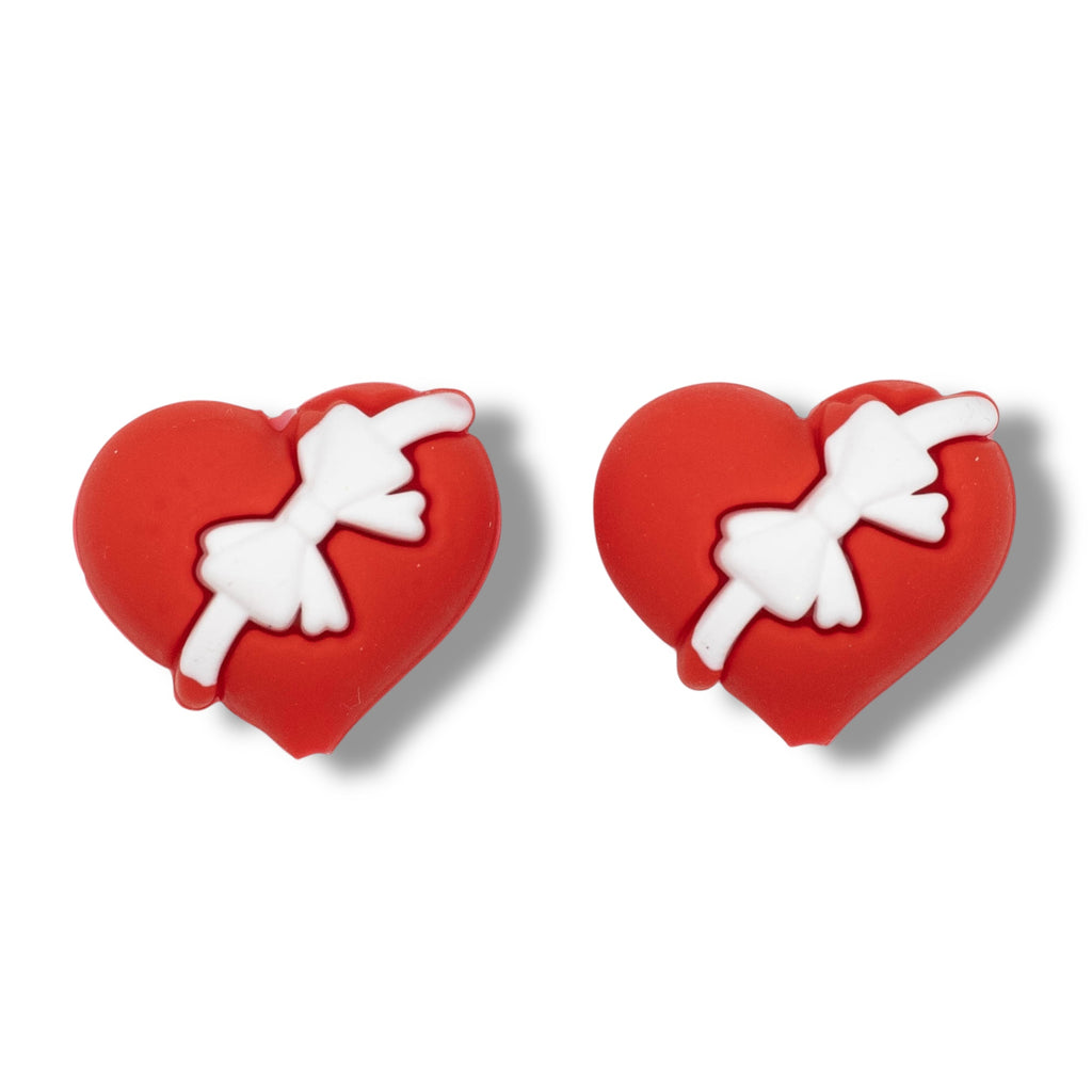 3-D Bow Wrapped Heart Silicone Focal Bead 26x29x19mm (Package of 2)