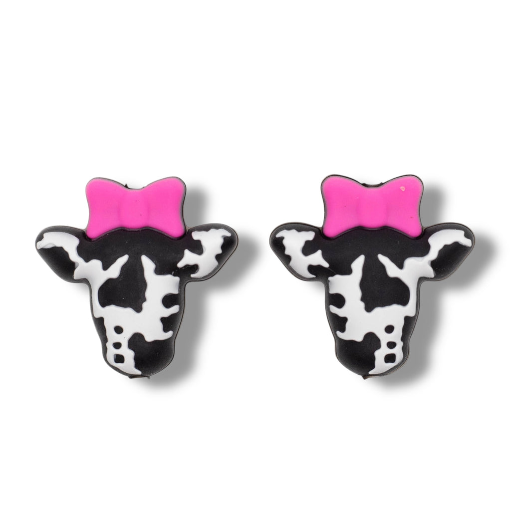 3-D Cow w/Pink Bow Silicone Focal Bead 29x30x15mm (Package of 2)