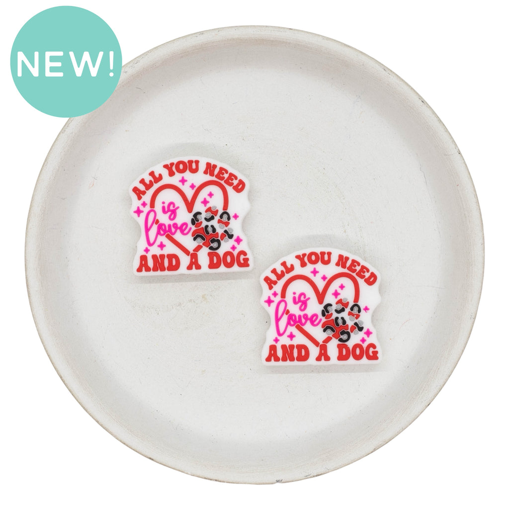 All You Need is Love and a Dog Silicone Focal Bead 28x27mm (Package of 2)