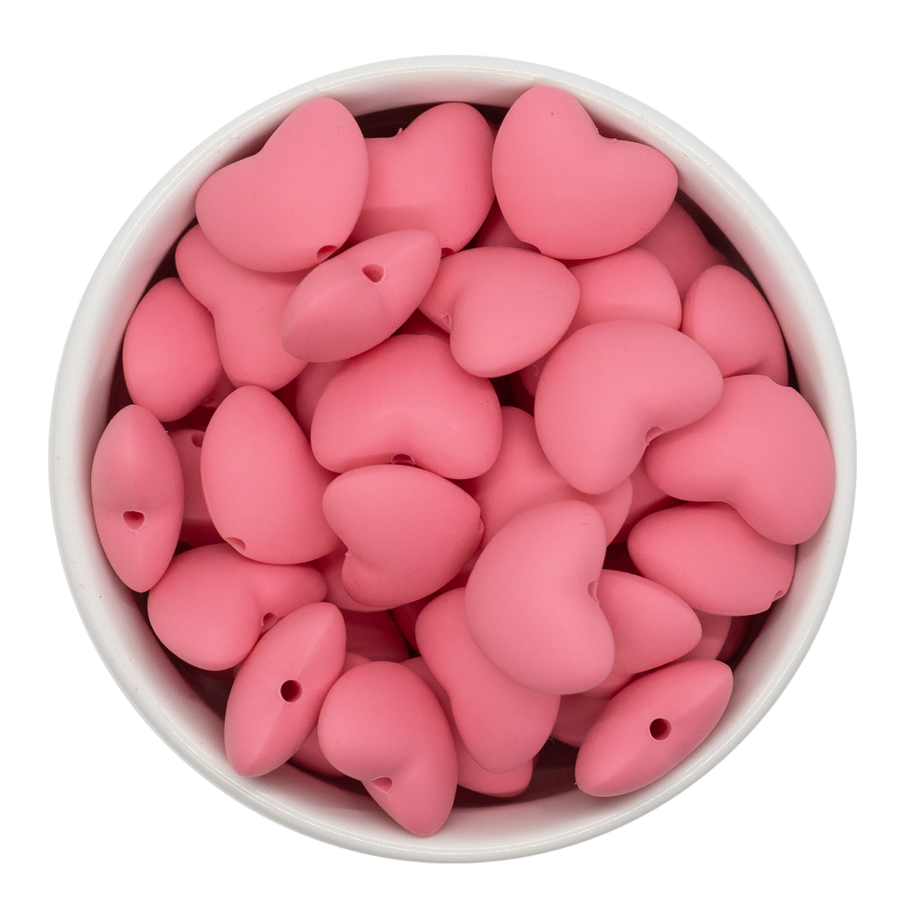 Coral Pink Silicone Heart Beads 20x16mm (Package of 5)