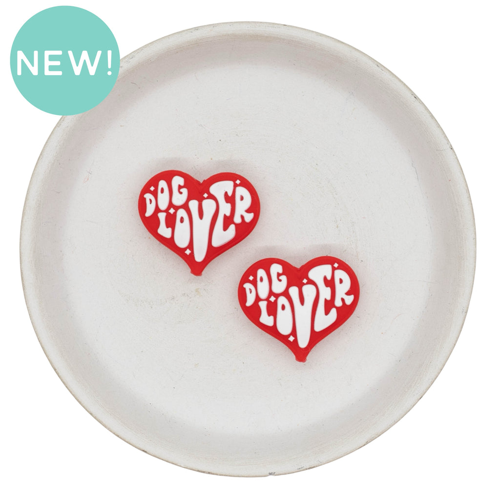 Dog Lover Heart Silicone Focal Bead 24x28mm (Package of 2)