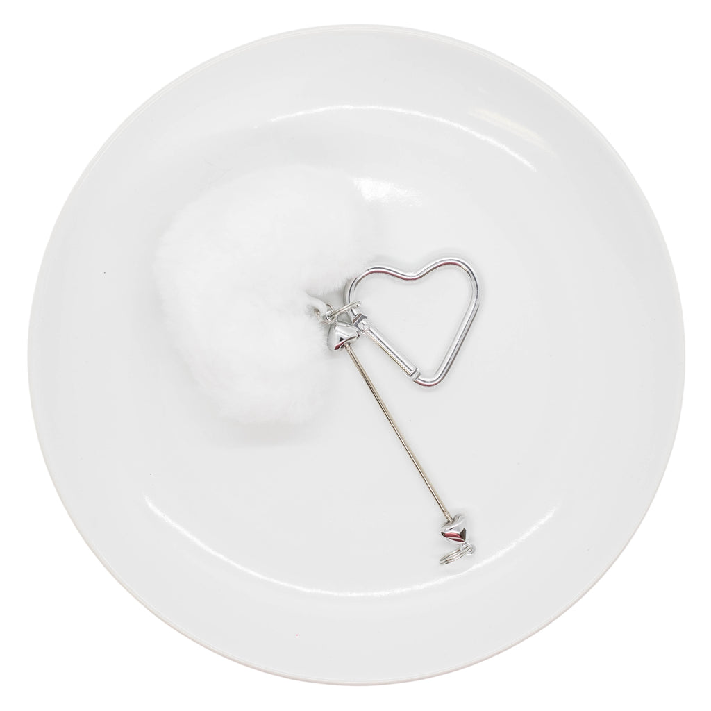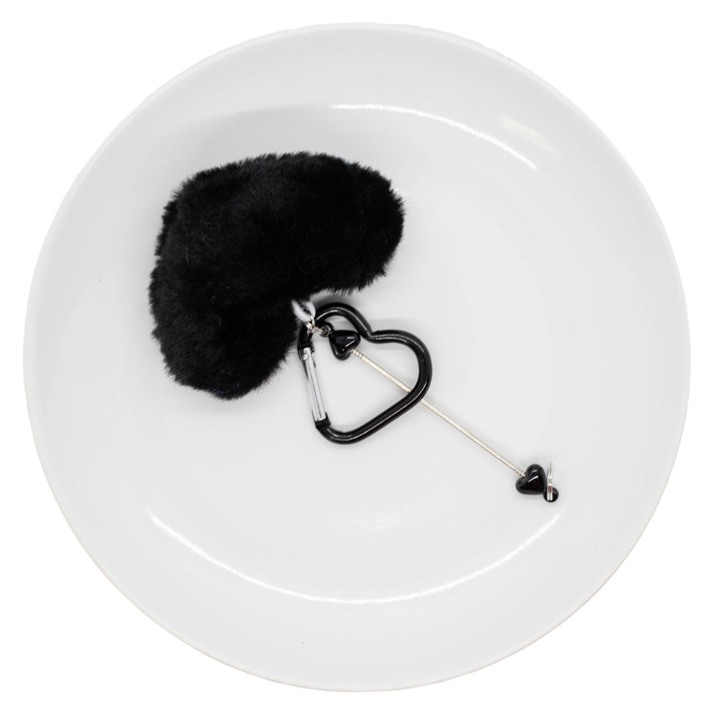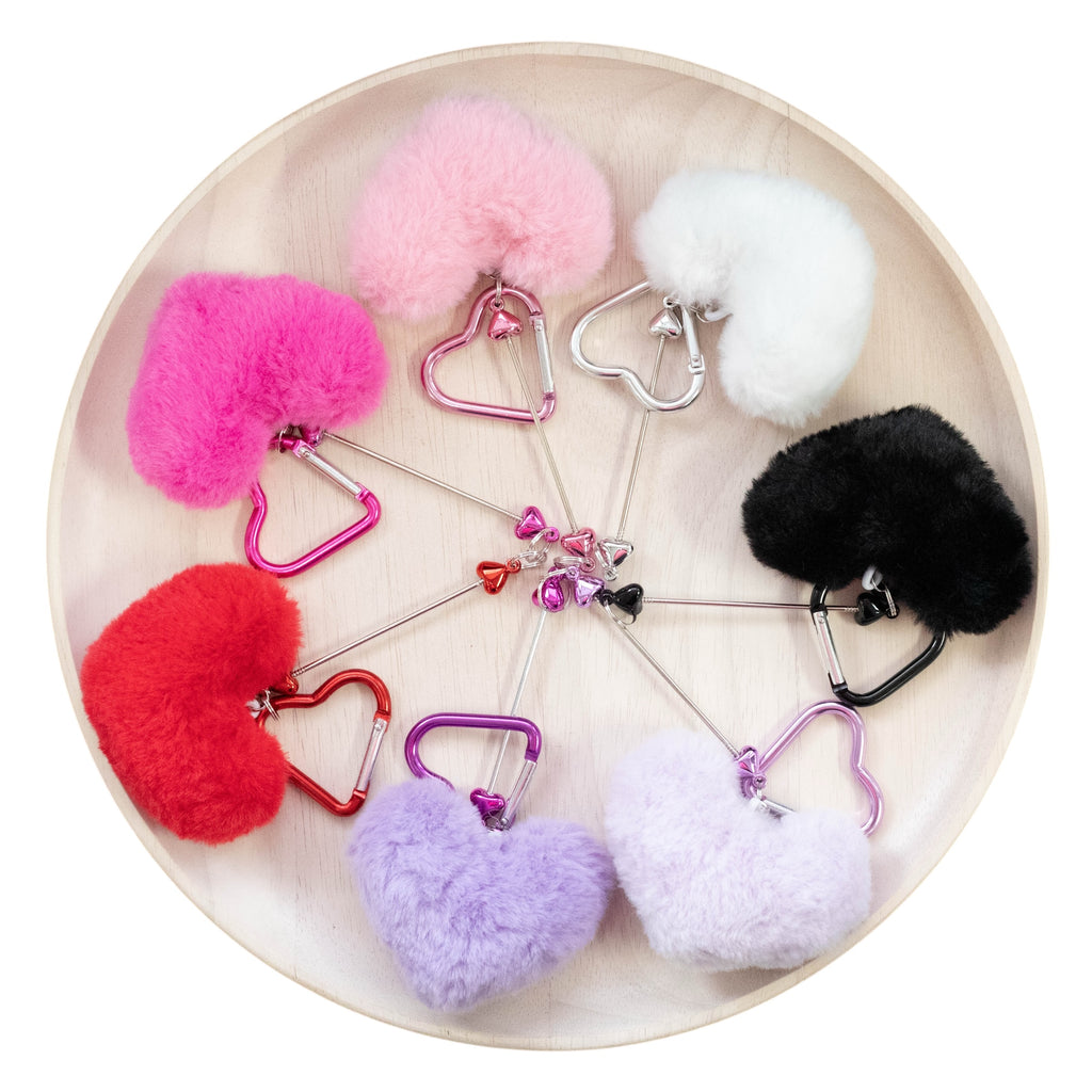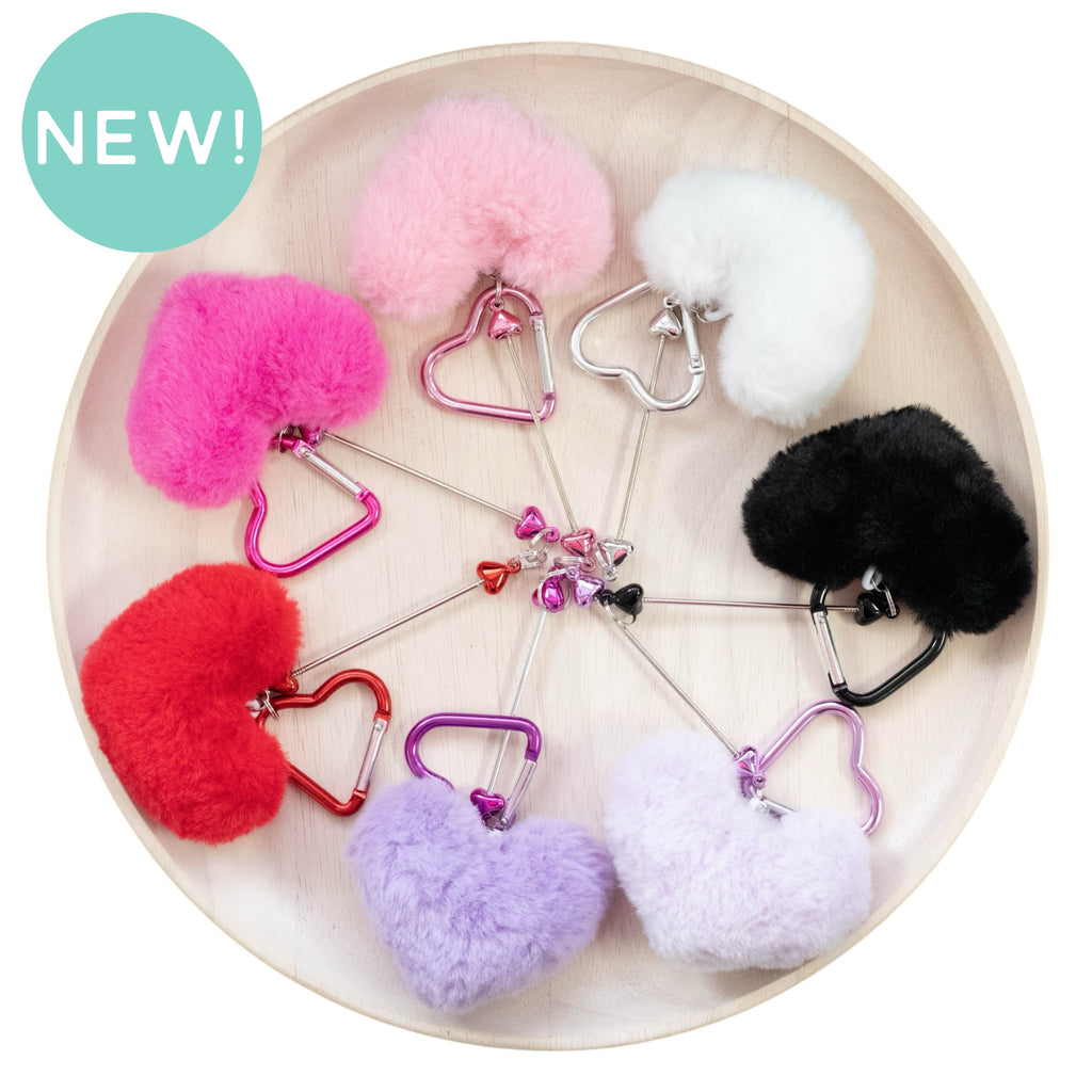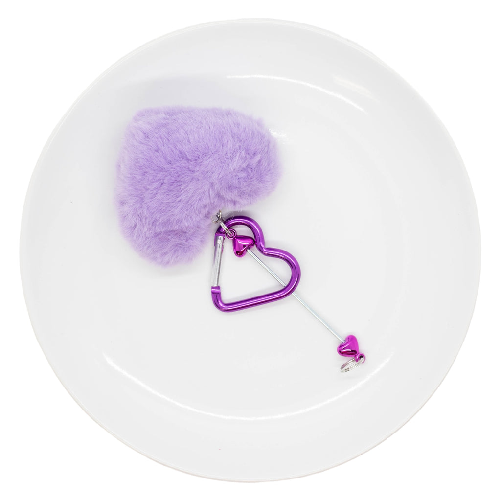 Style: Beadable Bar Keychain w/Double Loop Rod, Fuzzy Heart and Heart Carabiner