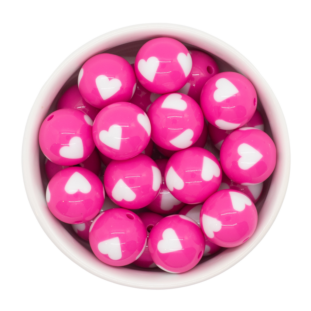 Hot Pink & White Heart Beads 20mm (Package of 10)