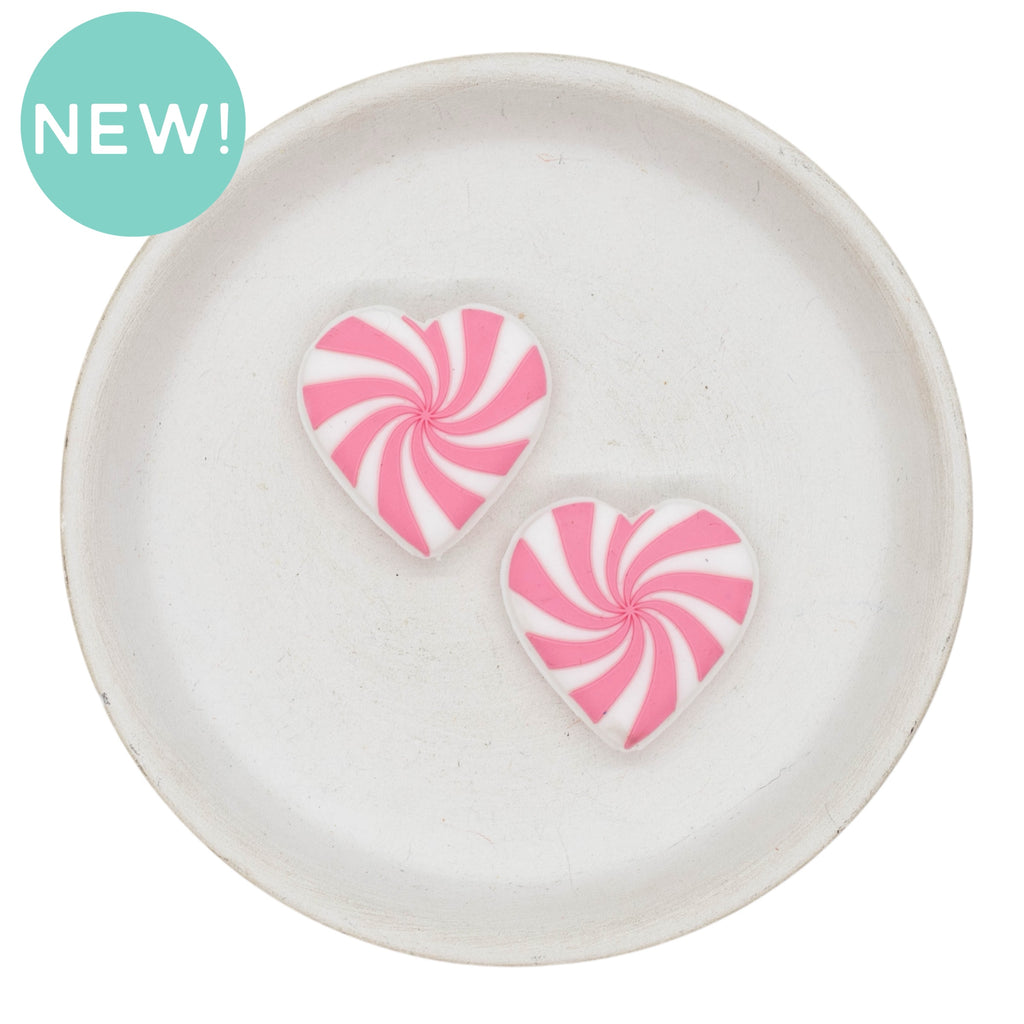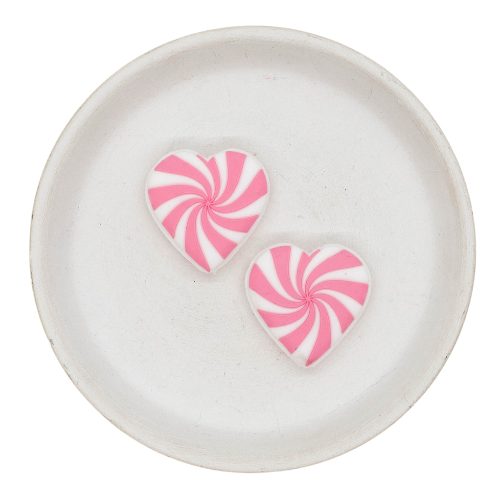 Pink & White Swirl Heart Silicone Focal Bead 29mm (Package of 2)